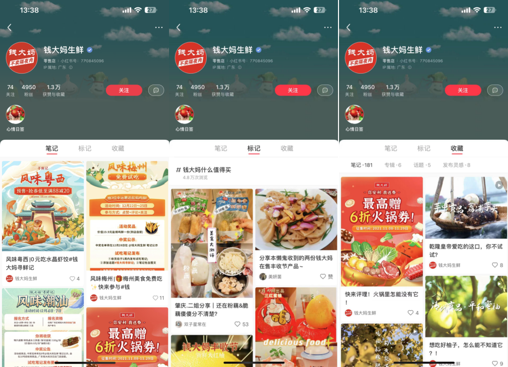 钱大妈在小红书粉丝数有4950,获赞与收藏1.3万。话题#钱大妈什么值得买 有4.8万浏览量,账号主要内容为产品介绍、品牌宣传等内容。