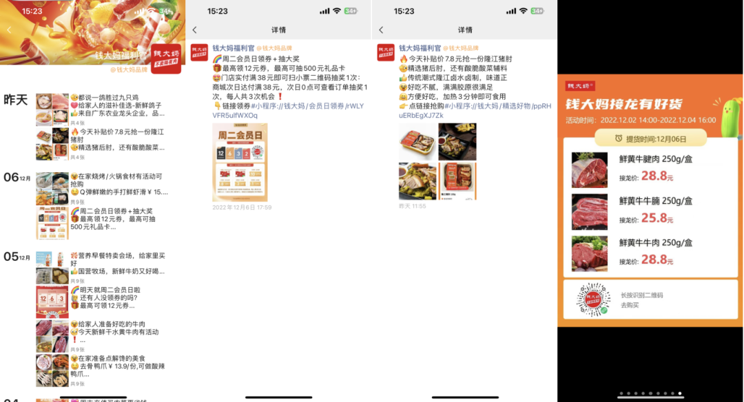 早在2018年,钱大妈就开通微信小程序店铺,打开社交电商渠道,之后开始建立私域社群,不断吸纳会员。