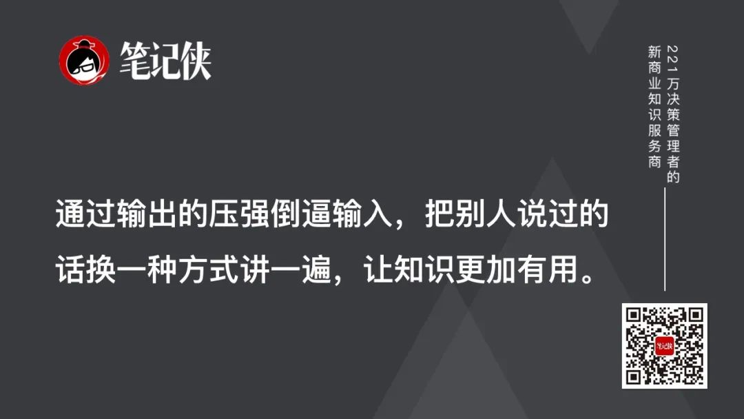 通过输出的压强倒逼输入,把别人说过的话换一种方式讲一遍,让知识更加有用。