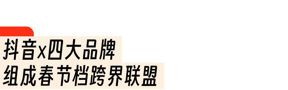 具体来看,抖音这波春节营销是如何在四大品牌的跨界合作中渗透用户社交属性的,核心逻辑是借助各个品牌的特色,聚焦年轻人群的社交特点与需求。
