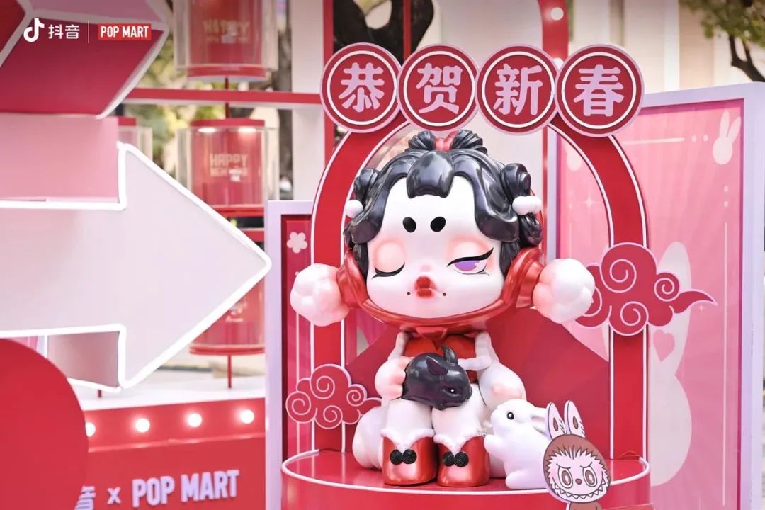 不仅如此,抖音还将这波向泡泡玛特讨彩头的快乐气氛,燃到了线下。12月30日抖音在上海落地首个抖音x泡泡玛特潮玩体验店,趣味互动+限定周边,让这一快闪店成为了上海年轻人必去的春节打卡点。另外从1月7日开始,抖音也同步在线下泡泡玛特门店上线相关福利通道,满满惊喜与福利等着你。