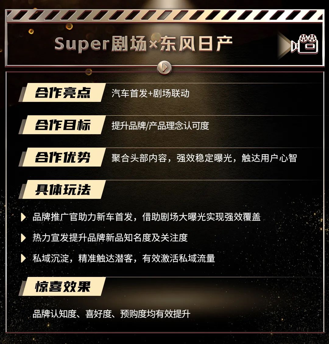 东风日产通过与Super剧场合作,为品牌新品上市实现全面精准强效的营销推广。通过品牌推广定制广告及头部大剧热力推广,助力品牌新品发布的强认知、强覆盖。