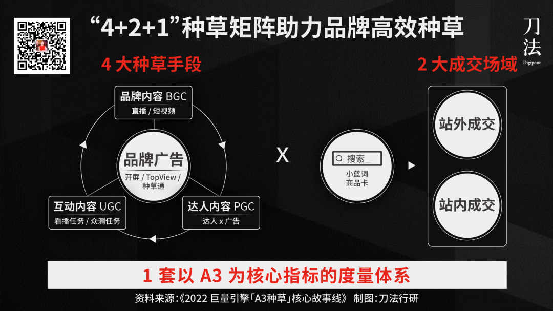 现在,品牌提升种草效果、提高转化效率的问题,就被简化为“如何培养更多的 A3,以及让如何让 A3 加速转化”。