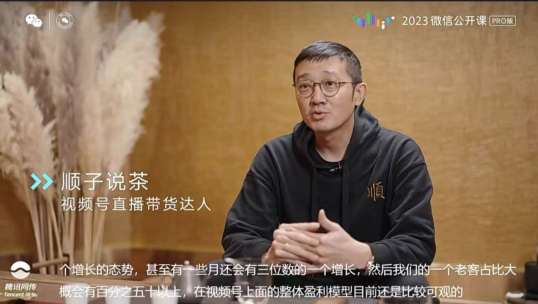 「顺子说茶」创始人陈镜顺预计其2023年的视频号GMV可以做到5000 万到 1 个亿,视频号贡献的GMV可以提升到整个大盘的30%。在他看来,每一个粉丝更像茶友,视频号就是一个趣味相投的朋友圈,直播间最重要的核心能力就是被人信任的能力。