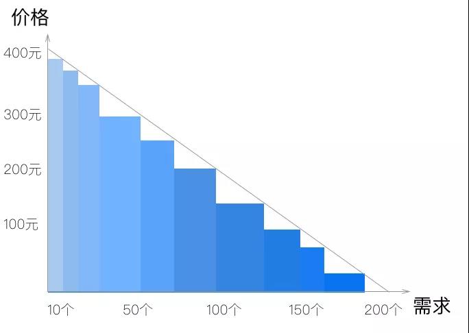 要想让利润最大化(三角形面积)的最佳手段不是一味的扩大生产或者提高产品价格(只能得到矩形),而是向每个消费者卖出潜在的最高价,即通过千人千价获取无数个小矩形,从而趋近三角形。