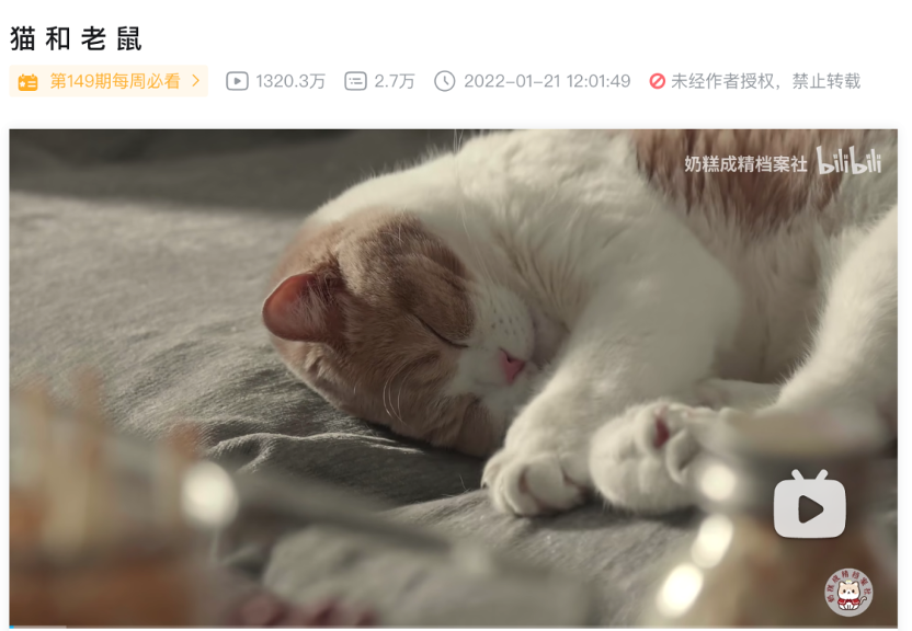 对于品牌合作来说,我印象最深刻的是播放量已破 1300W 的《猫 和 老 鼠》。
