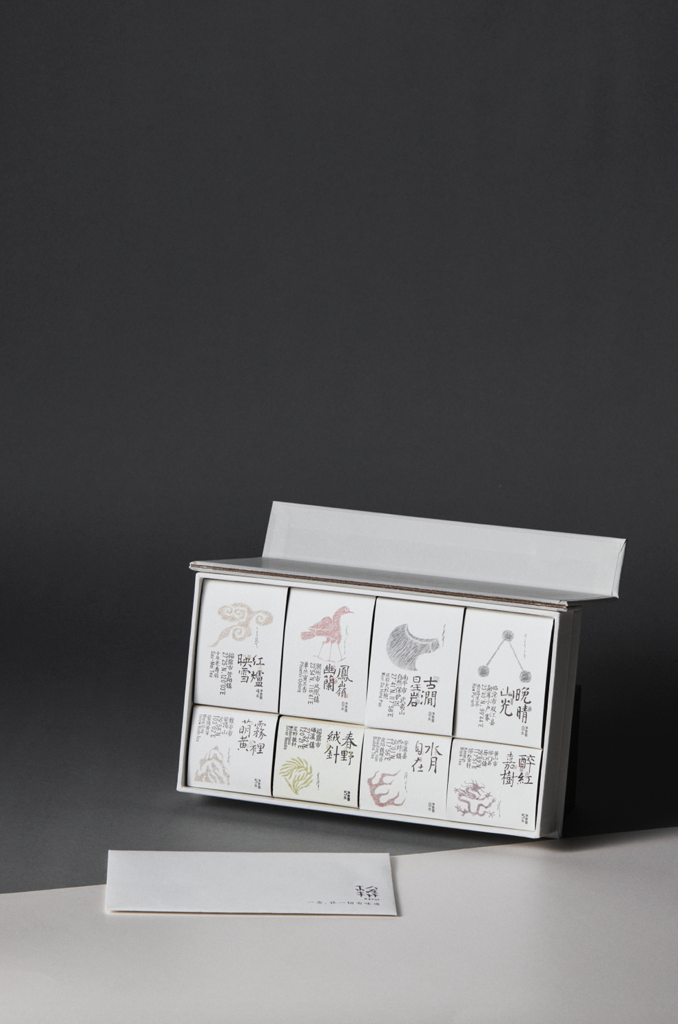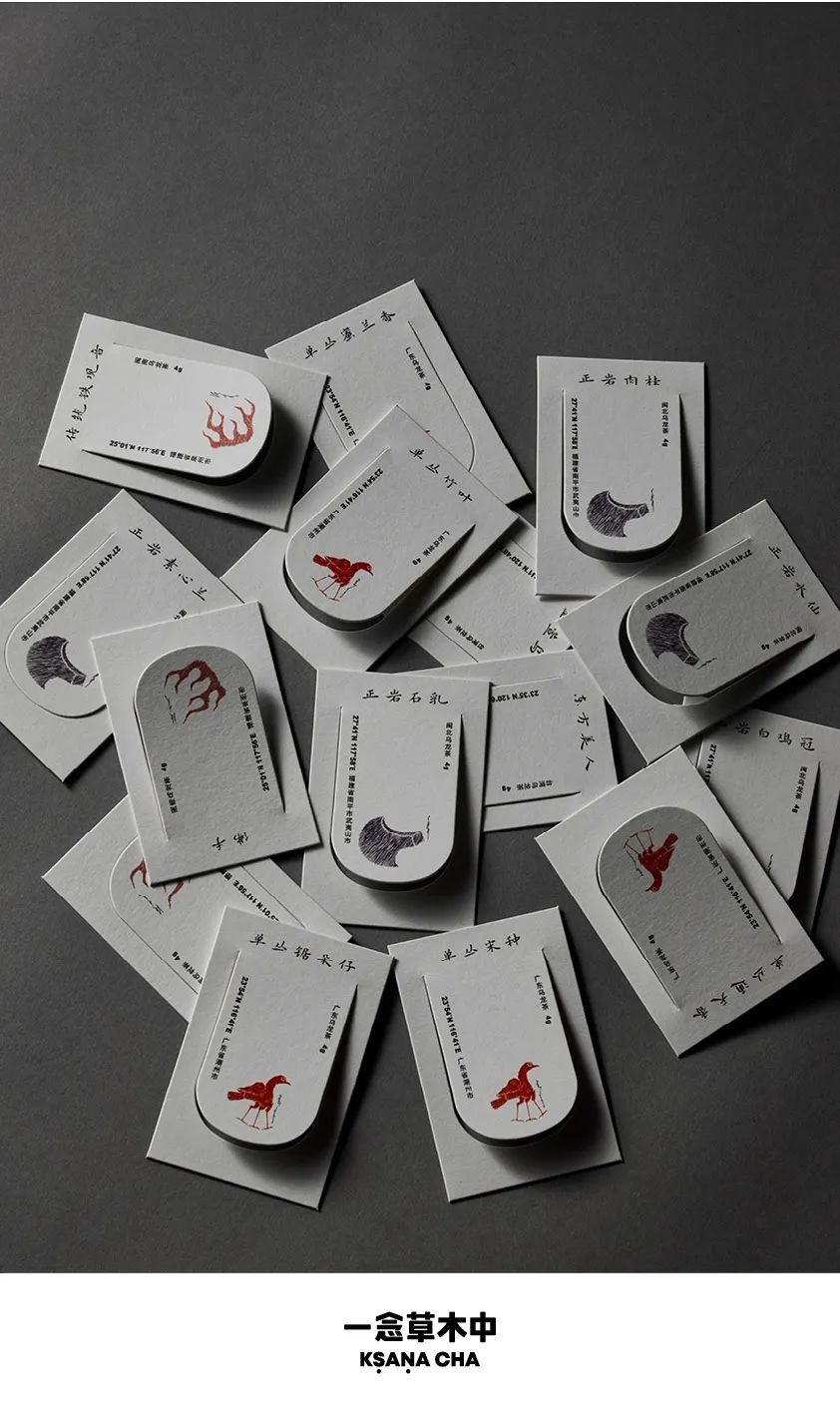 除名字外,一念还为每款茶配上了专属章纹、原创诗句和单字来进行东方表达,例如“红炉映雪”的章纹是一朵白云,原创诗词是“仙人下来饮,延寿千万年”,单字是“仙”。