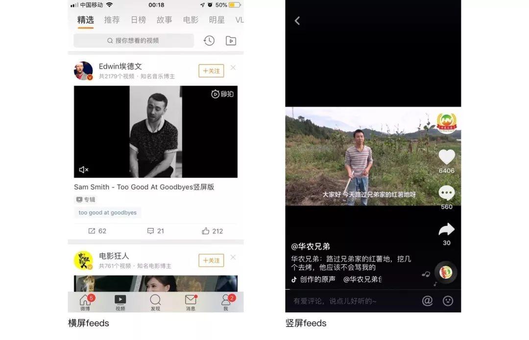 在同一个视频feeds里,横向视频和竖向视频可以更好的共存,比如针对性的全屏切换方式,横屏内容旋转屏幕,竖屏内容直接向下展开,以达到最好的观看效果。