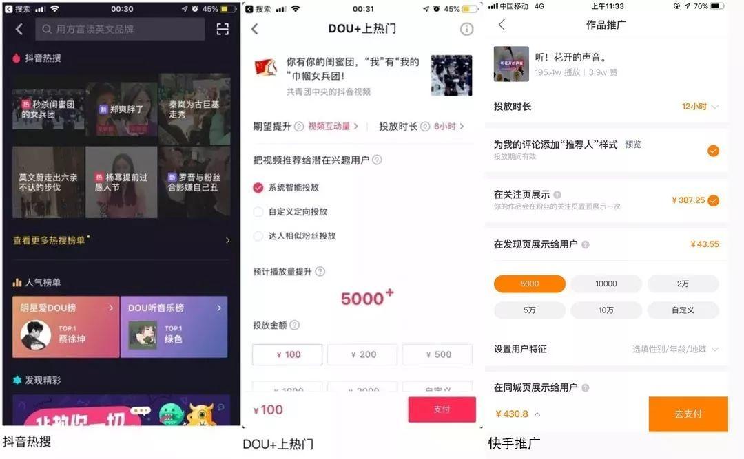 各短视频平台效仿微博推出的“热搜”,以及“DOU+上热门”功能,实则上也是为了解决这一问题,但用户习惯了在首页推荐的沉浸式浏览体验,热搜的转化效果如何,就不得而知了。