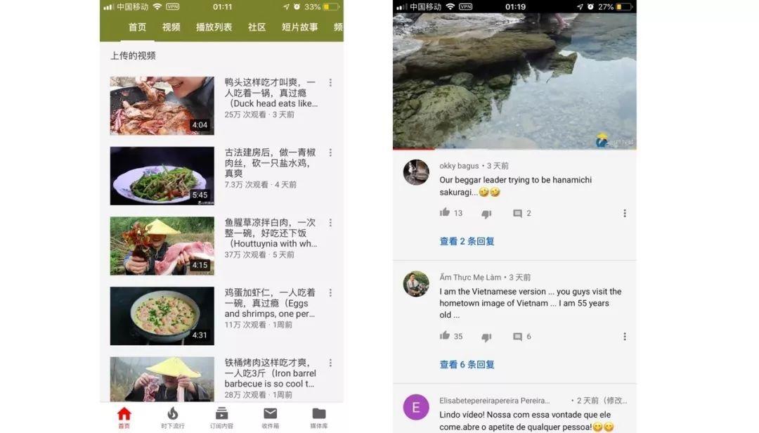 其中“山药视频”的意识十分超前,他在youtube投稿的每个视频的都配有中英文双语标题,这一举措拓宽了他视频的受众,为他赢得了许多海外的粉丝,在山药视频的评论中,除了中英文,甚至还有阿拉伯、印度、俄罗斯等五花八门的语言,可谓是国内三农内容创作者走出海外的典范了。