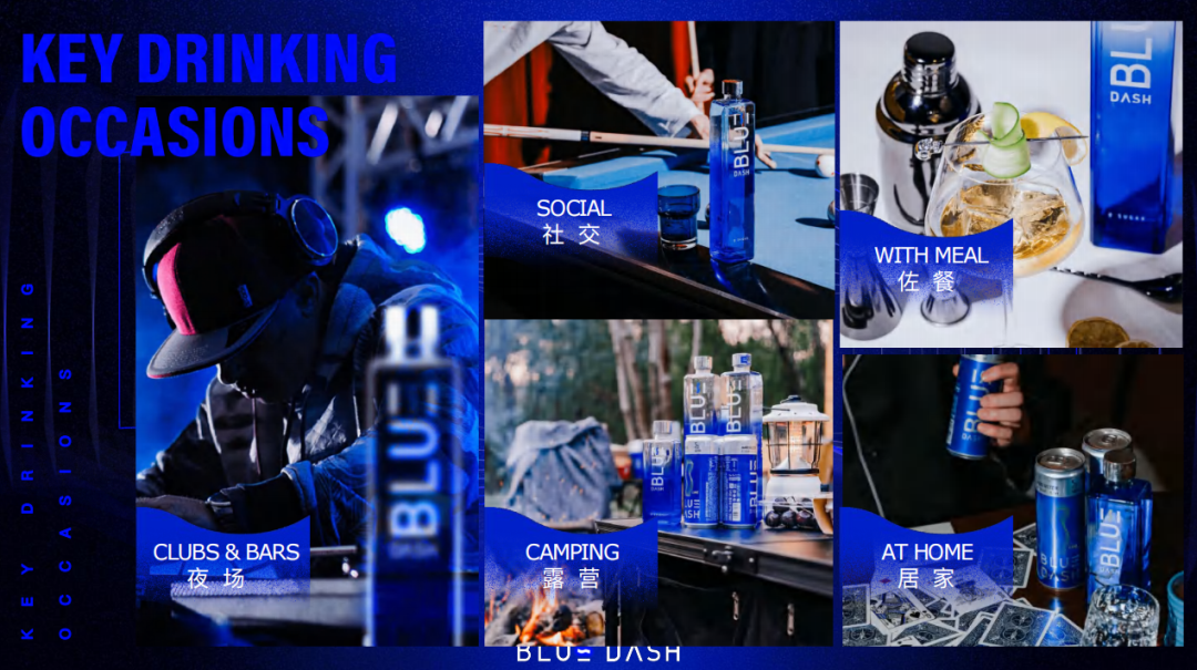 这也是「BLUE DASH」的品牌使命,我们希望打造属于中国年轻消费者自己的酒精潮饮。