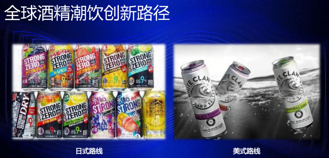 世界上比较主流的酒饮品类有日式路线和美式路线,日本预调酒有20年的发展历史,它现在的占比已经超过了啤酒。