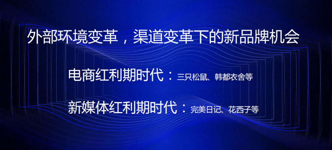 过去我们也看到几个红利期,首先是早期的电商红利,三只松鼠、韩都衣舍都是早期的淘品牌,做得非常不错。