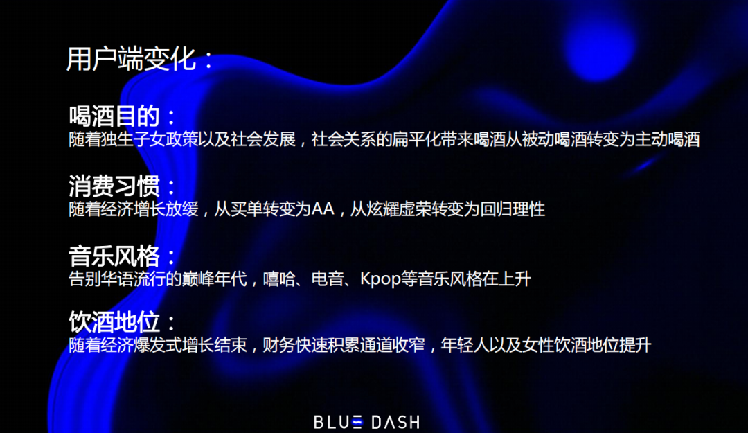 终端渠道发生了非常大的变化,这也是我们第一站从夜店切入的原因。为什么这件事在这两年可以做?就是因为这两年行业在换血和动荡。