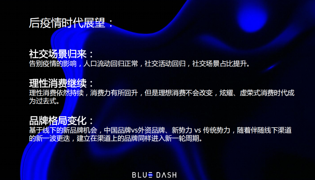 后疫情时代会慢慢进入挑战更大、淘汰率更高的阶段,竞争可能比疫情这几年更残酷,无论是对于新品牌还是大公司,都要面临更严峻的挑战。