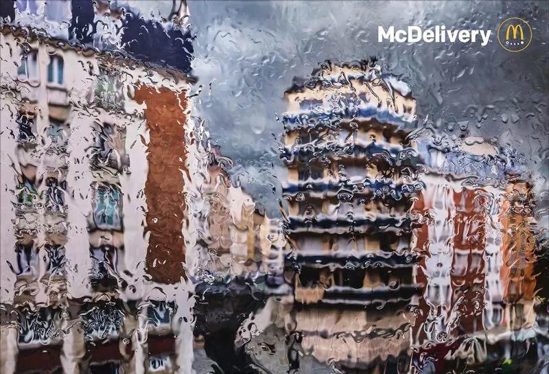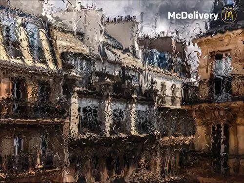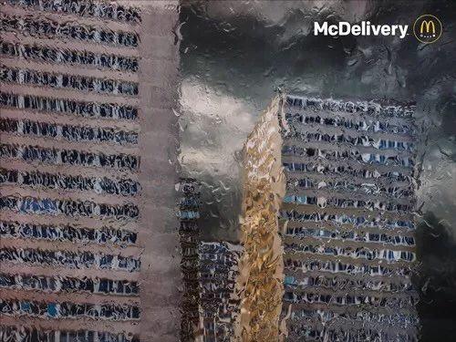 细雨连绵时总会自动勾连起人们的惆怅,或者是一股子为艺术做点滴贡献的冲动。这组平面海报,除了右上角有麦乐送(麦当劳网上订餐)的logo之外没有别的太多的广告符号的植入,简洁中带有一股雨天的情致扑面而来。