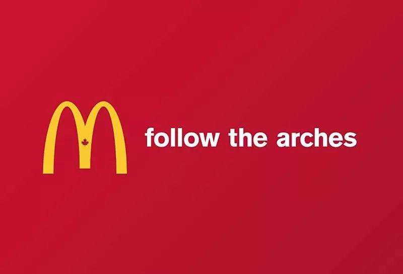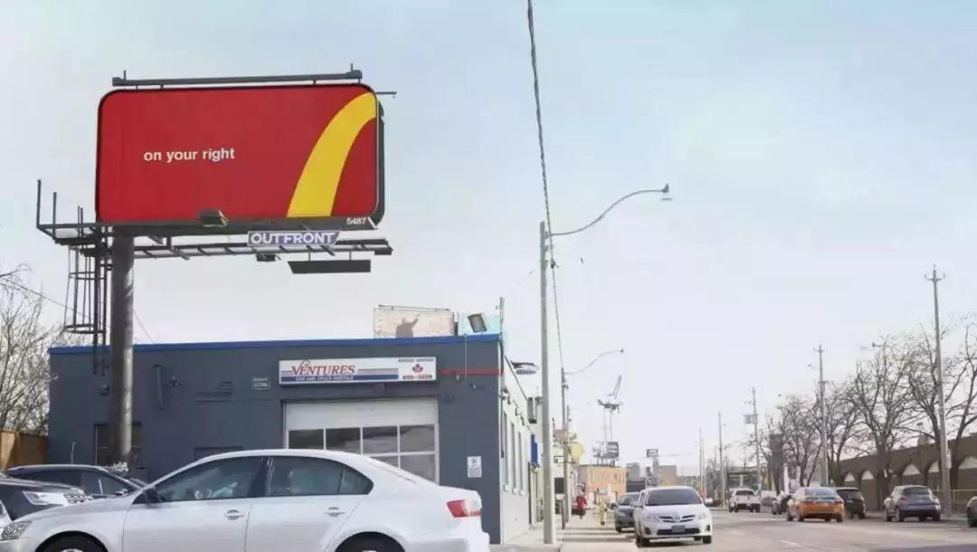 这是加拿大麦当劳以(跟随金拱门)[FollowtheArches]所推出的平面海报,目的是为了提高品牌的辨识度。在这一系列海报中,设计师将金色拱门标志拆解做成指示牌。路上的车按照指示牌所指示的方向,就可以去到最近的麦当劳门店用餐。