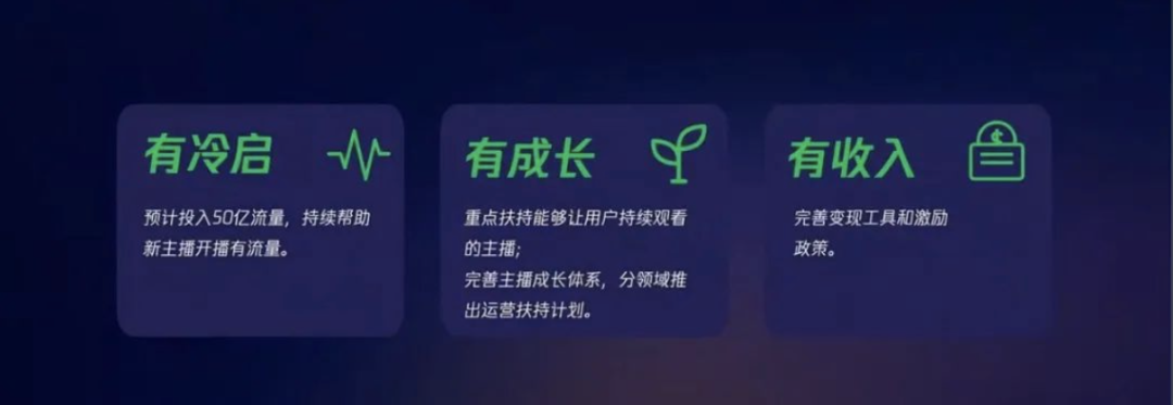 2023年预计投入50亿流量,持续帮助新主播开播有流量;重点扶持能够让用户持续观看的主播,完善主播成长体系,分领域推出运营扶持计划,让主播们有成长;完善变现工具和激励政策,让主播们有收入。