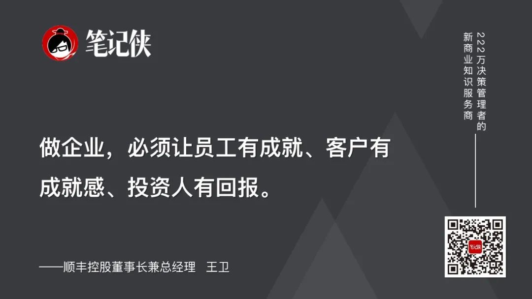 2.如果不是始终把客户利益放在最高的地位,如果没有坚定的价值观,始终是把员工、客户摆在非常高的位置,我和顺丰走不到今天。