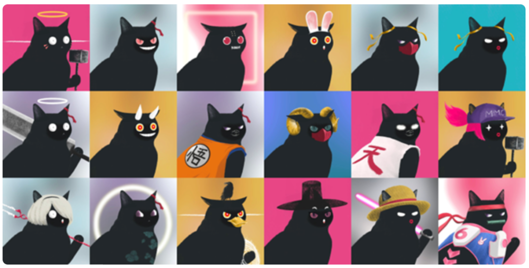 2022年12月份,它跟MIMIC SHHANS黑猫社区进行了整体合作。熟悉NFT圈的朋友可能知道,MIMIC SHHANS是一个基于以太坊的 10K PFP NFT 项目,一支来自韩国作者SHHAN的纯手工绘制黑猫的NFT作品。黑猫是特别喜欢做艺术展览二创的。