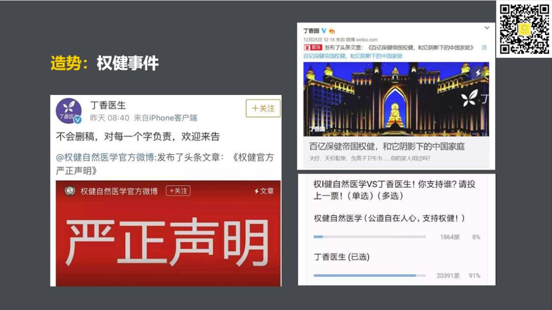 过去我们可能只是提供科普知识,现在我们会给更多的信息增量给你,比如哪些黑心企业正在威胁你的生命权,哪些伪劣商品实际上不能帮助你走向健康,我们甚至会揭露一些营销骗局,告诉你获得健康其实不需要那么多钱的。通过这一系列的调整,我们真正的实现了突破圈层。