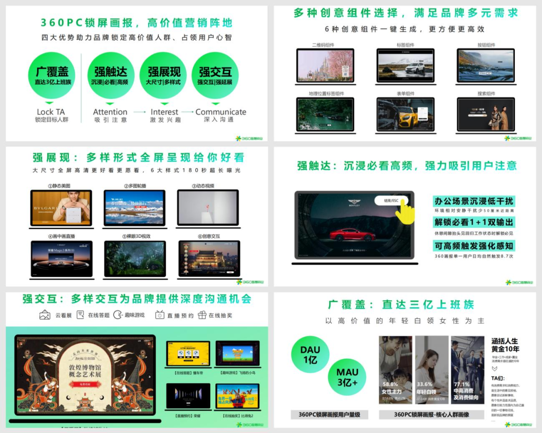 通过搭载不同的营销产品和应用场景,360PC锁屏画报正助力品牌主实现从品牌曝光、用户沟通,到效果收割的闭环,致力于为广告主构建一条完整而清晰的“品效协同”营销链路。