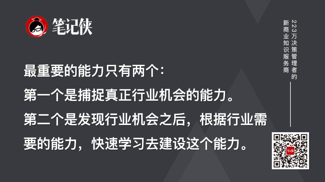 4.最重要的能力只有两个,第一个是捕捉真正行业机会的能力。