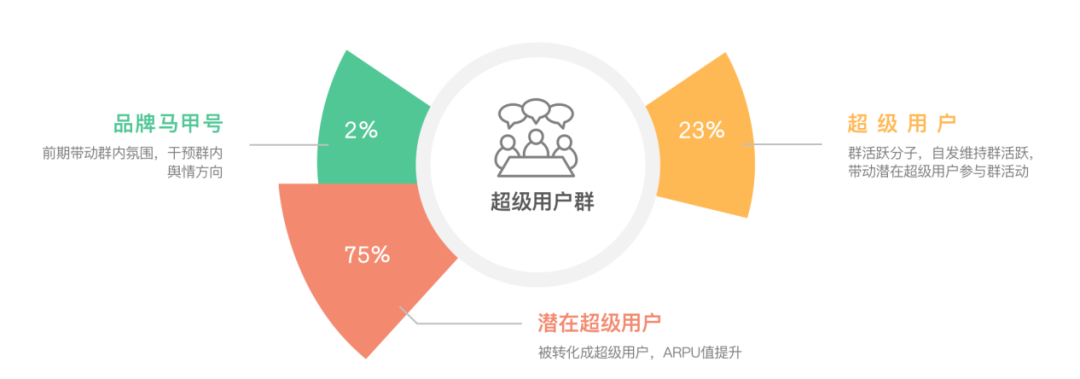 超级用户社群的人群价值非常高,他们是最快,也最容易取得成绩,即使一开始做不到去运营化,运营难度也是最低的。因此,优先运营超级用户社群,取得成绩才能有助于私域部门获得更多人员和经费的支持。