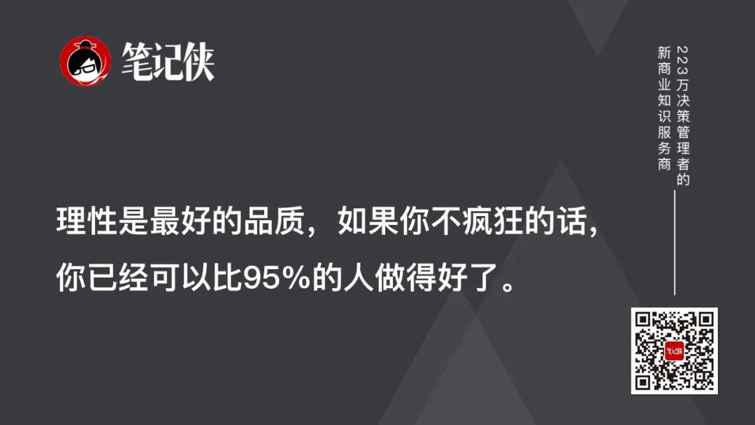 9.理性是最好的品质,如果你不疯狂的话,你已经可以比95%的人做得好了。