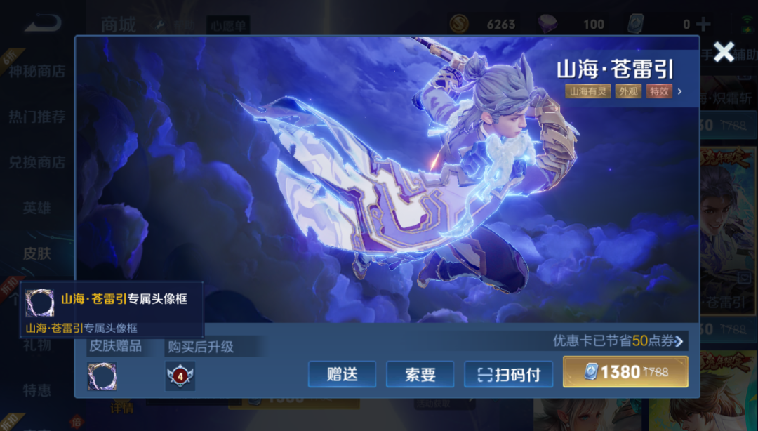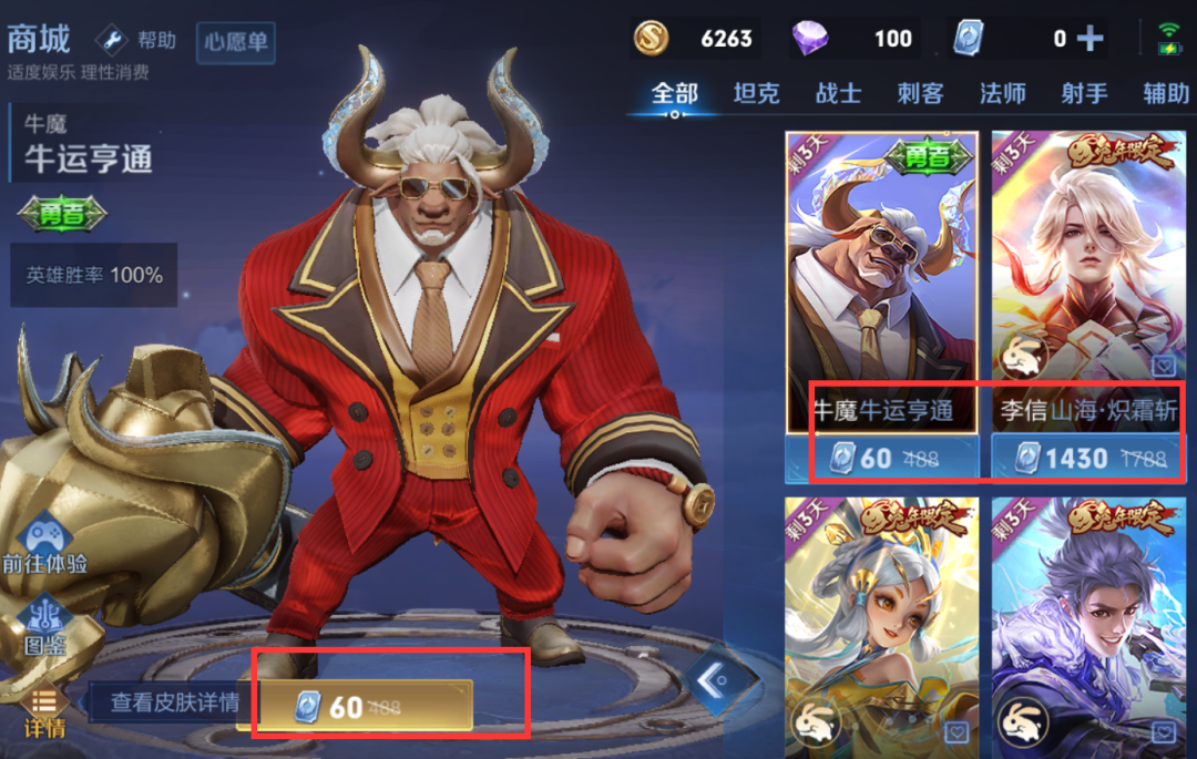 | 皮肤 | 低档:6元/28.8元/38.8元/48.8元 |