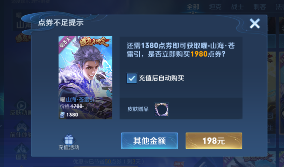 组合购买:或者现有活动皮肤可以以一定的比例点券和金币组合购买,让这部分骨灰不付费玩家也体验一下付费的快乐