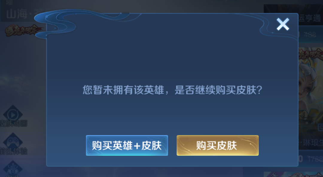 | 匹配/排位 | 皮肤购买/更多特效/更多英雄购买 |