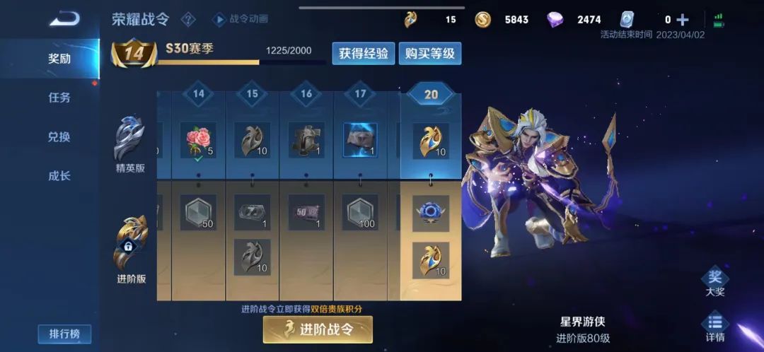 感知区域:游戏主界面有专门的入口,进入之后就会有整个战令等级,经验值,能兑换什么,都有所体现