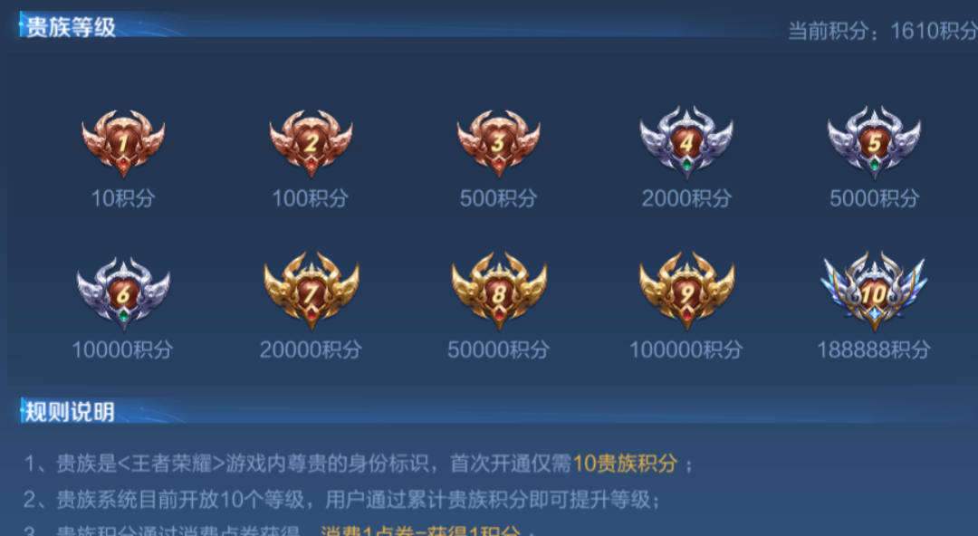 王者荣耀产生消费即可称为贵族会员,可享受贵族特权