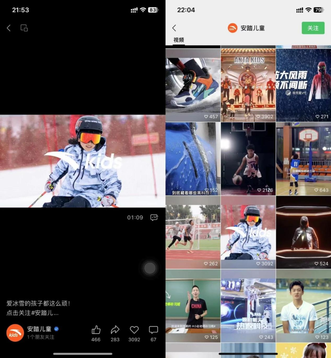 而这种专注“内容力”的传播策略,不仅能帮助品牌打破千篇一律的同质化困境,也能让消费者以更加高效的方式认识新品,缩短从“新品到爆品”的转化路径。比方说在北京获得冬奥举办资格、冰雪运动大热之时,安踏就为旗下返热科技产品打造了一场户外冰雪探索热点事件。通过视频号发布直播冬奥场地探索活动,视觉化呈现极具场景感和品质感的户外冰雪内容,有效突出了返热升温、保暖性增强等产品科技属性,在产品上市之处就建立起自己的“护城河”。