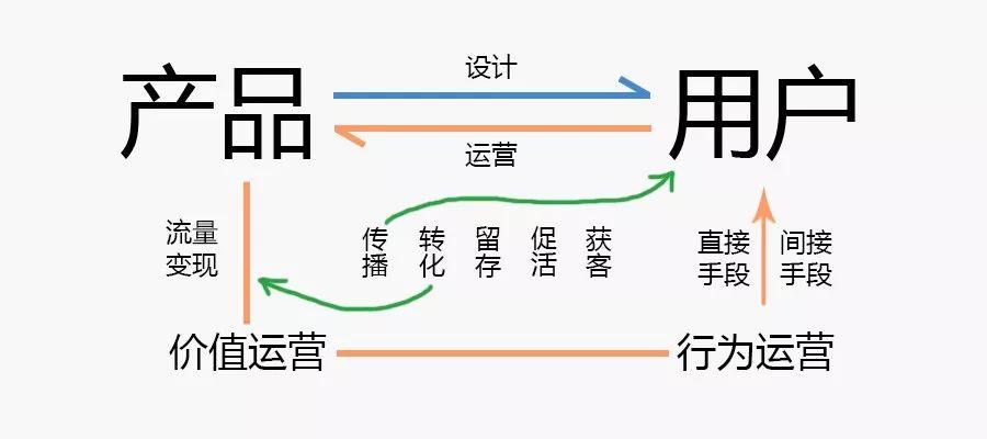 用户运营:对用户进行行为运营,对产品进行价值运营。
