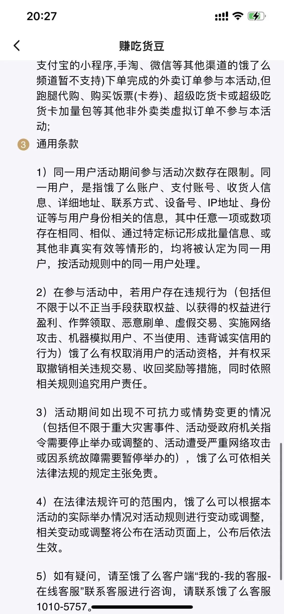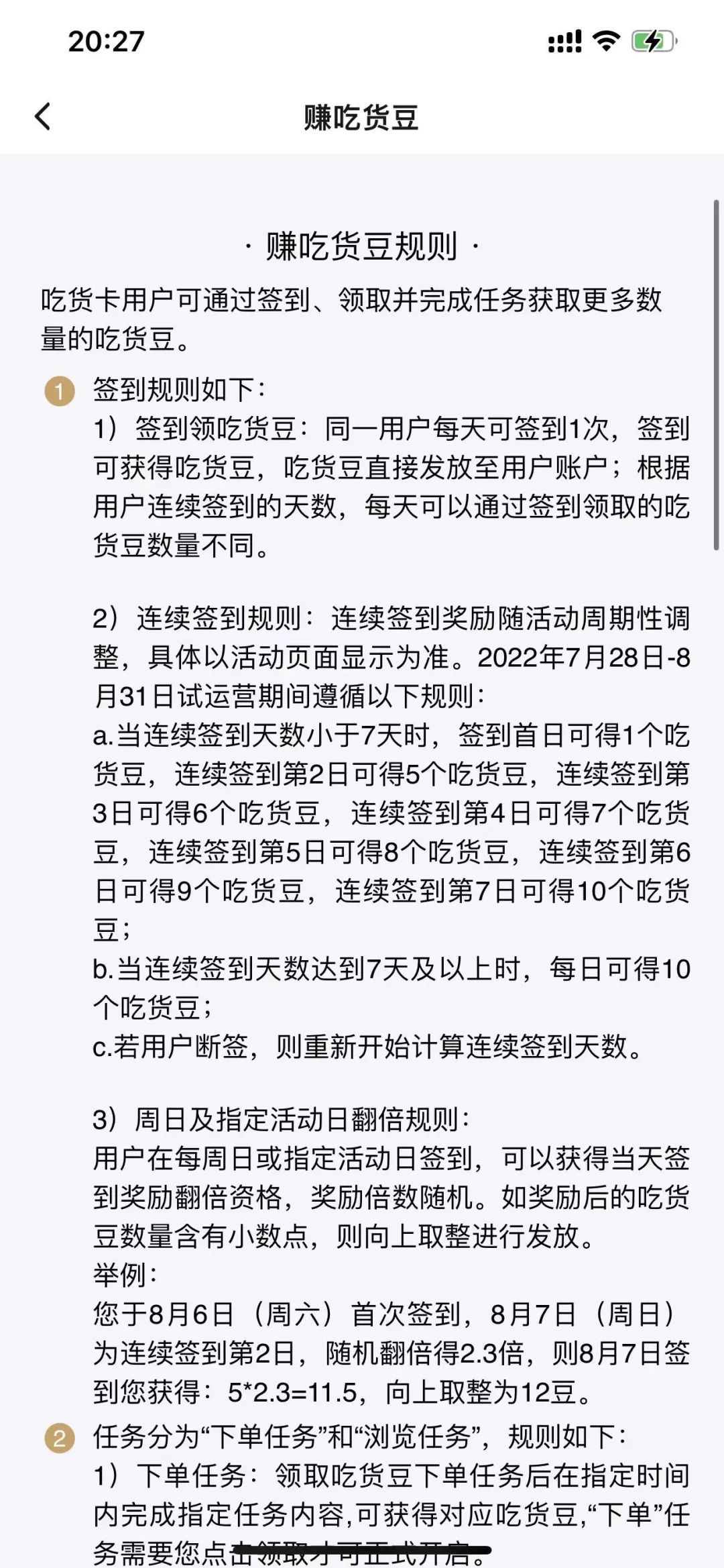 1. 无门槛红包3元:8张2. 下单实付满20元:返100吃货豆(猜测:每300吃货豆可兑一张3元无门槛红包)
