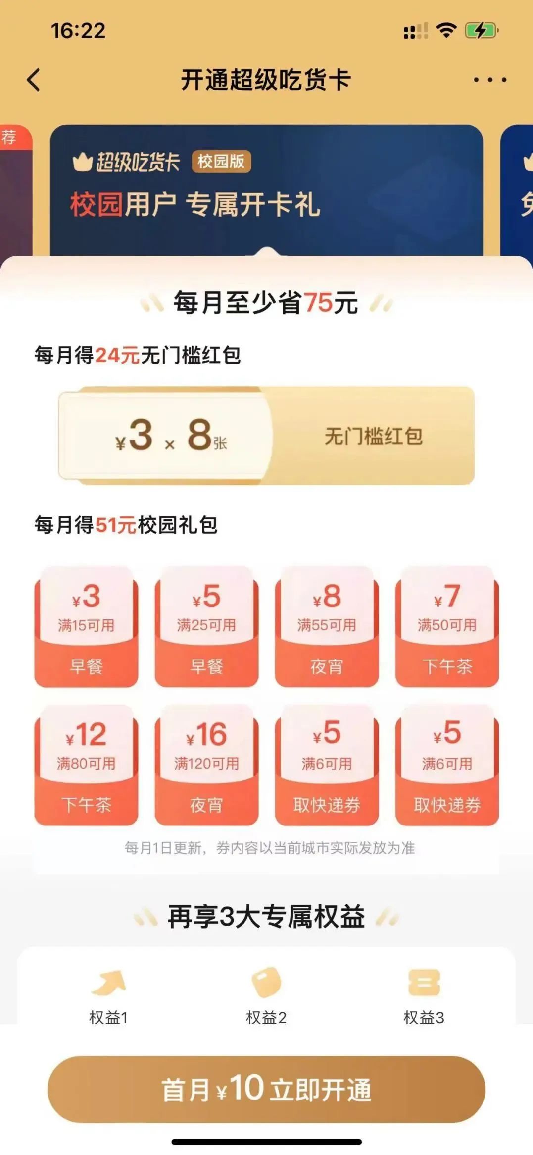 | 会员名称 | 超级吃货卡(尊享版) | 超级吃货卡(校园版) | 超级吃货卡(免配送费版) |