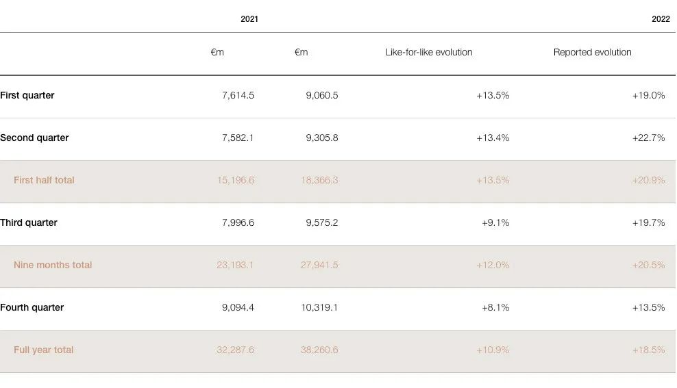 图源:欧莱雅集团2022年财报 欧莱雅集团销售额2021/2022