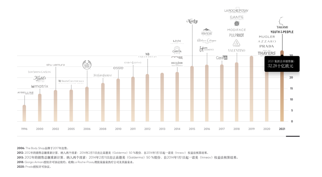 图源:欧莱雅官网 欧莱雅集团品牌收购历年表