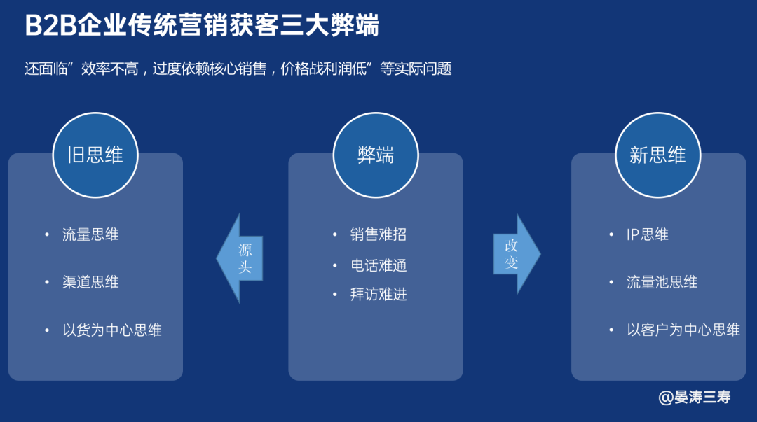 因此,要摒弃旧的思维,做出改变。从3个点出发:IP思维、流量池思维、以客户为中心思维,下面会进行具体的讲解。