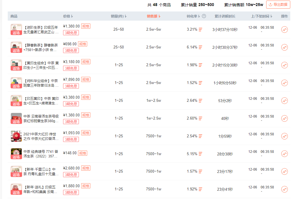 ②重点介绍产品口感、产品价值和收藏价值,以及送礼等场景,针对中茶的不同系列普洱做针对介绍,用户更能选择到合适自己的普洱,主播有自己讲品过品节奏,不被直播用户左右。