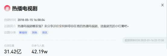 想必大家都知道,电视剧话题一直都是热点话题被用户所挖掘,最近很火的《狂飙》在小红书有228万+的笔记量,《去有风的地方》在小红书上有109万+篇笔记在小红书上发布