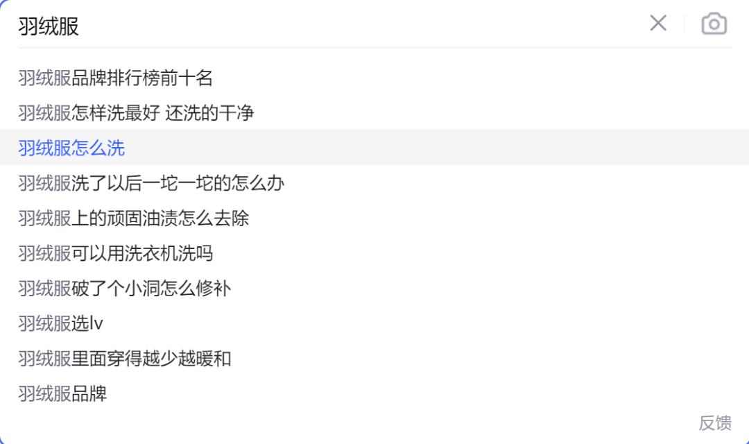 2、浏览器搜索下拉框,比如卖羽绒服: