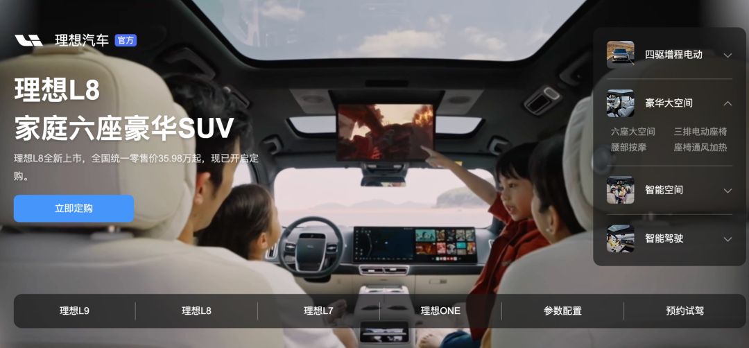 ——你好!我们是理想汽车。“创造移动的家,创造幸福的家”是我们的品牌使命。我们聚焦于为家庭打造更安全、更舒适、更便捷的产品与服务。