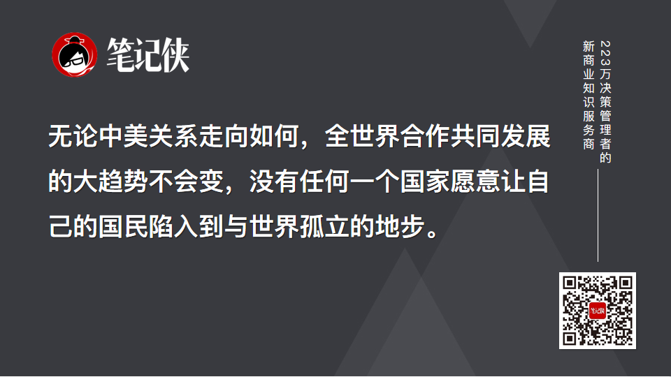 第二,无论中美关系走向如何,全世界合作共同发展的大趋势不会变,没有任何一个国家愿意让自己的国民陷入到与世界孤立的地步。从这个意义来说,“东方不亮西方亮”,领导人也一直表示中国要保持开放的态度,国与国之间要积极寻求合作共赢。