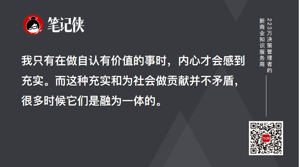为什么我还在坚持?我做这一切,并不仅仅是为了要高唱为祖国繁荣、社会进步和人民的美好生活做出贡献,更重要的是自己内心对于价值的一种需求。我只有在做自认有价值的事时,内心才会感到充实。而这种充实和为社会做贡献并不矛盾,很多时候它们是融为一体的。