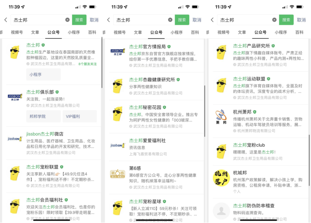 公众号:杰士邦旗下建立了庞大的公众号矩阵,不同的账号承接的用户也有所不同。例如,「杰士邦宠粉联盟」主要面向私域用户;「杰士邦秘密花园」主要面向女性用户。