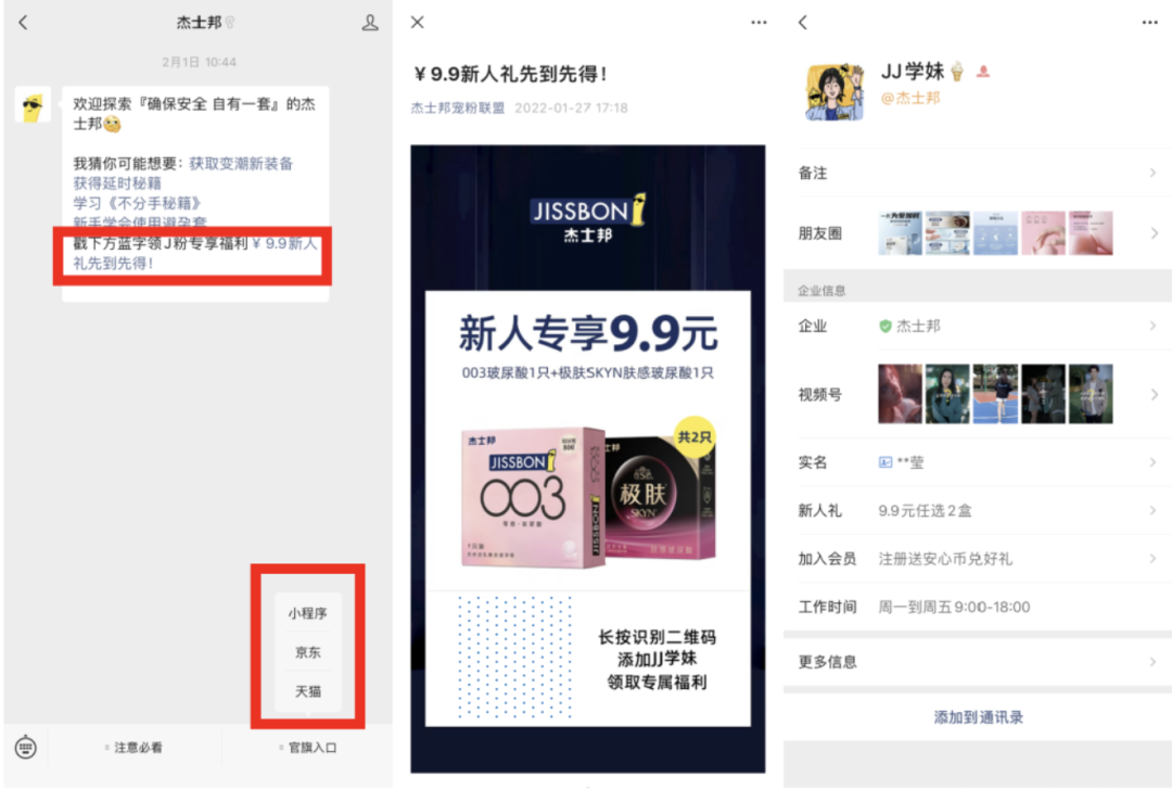 作为行业的领导品牌之一,杰士邦是如何做私域的?下面就为大家拆解。