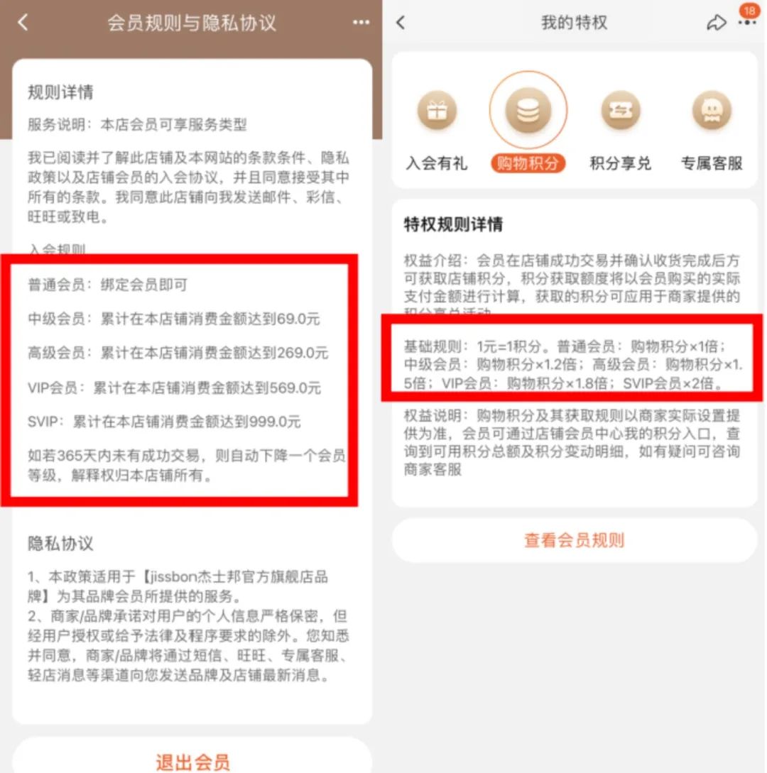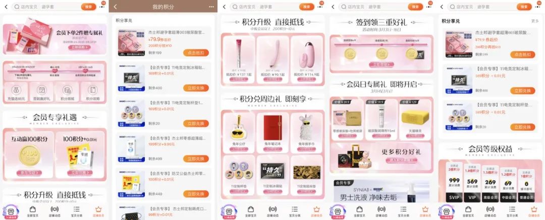 杰士邦电商平台的会员体系相对完善,主要以成长会员+积分体系为主。下面以天猫平台的会员体系为例。
